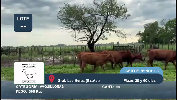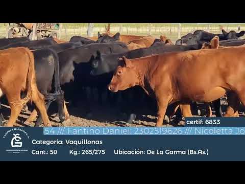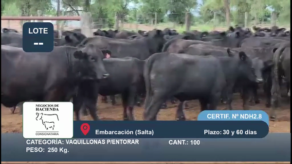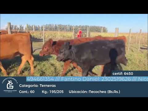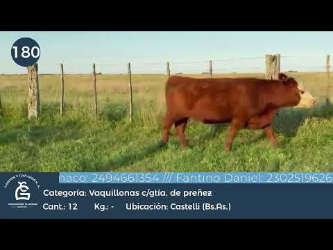 Excelente vaquillona La Tregua SA. Venta 450 vaquillonas preñadas AA entore 15 meses. Negras inseminadas 8-11-2024 con Crespo, y repasadas con toros propios de bajo peso con análisis genomicos de Zoetis hasta el 15-01-25. Coloradas inseminadas misma fecha, con Ombú y repasadas idem negras. Parición primavera 2025. Peso promedio 400/420 kgs al momento de la entrega. Fecha de entrega con garantía de preñez por tacto: 15/03/2025 Se hace la opcion de llevar 1 jaula de coloradas al corte del lote total y 1 jaula de negras sobre el lote total