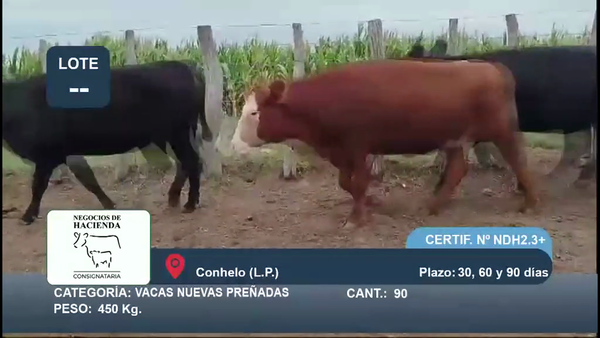VACA CUT - PLAZO VTOS: 2/5 /2025 - 2/6/2025 Y 2/7/2025 -Tr de 1 a 5 meses - Sanidad completa, Libre de Brucelosis, Vc Mediana, toda con Algo de Diente