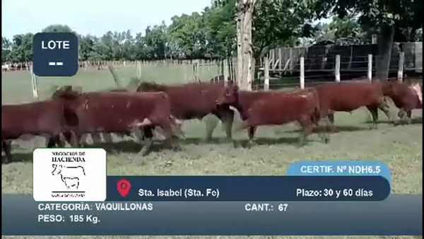 Desbaste 2% sale 1 jaula Hijos de Red Fire y Toro PP hijas de Vc PC y MAS x IATF origen Santa María EDAD: 6 meses
