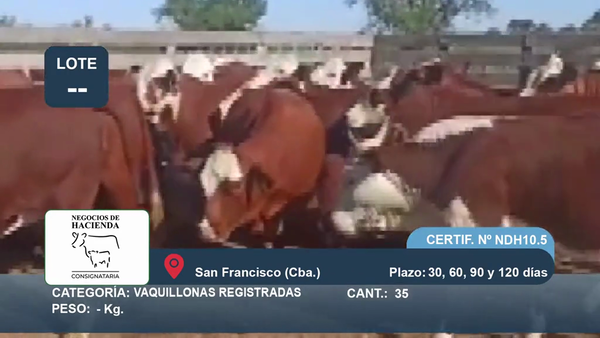 Plazo: Desde Remate 90 dias o 5 cuotas, Toda Vc libre de vieja, boca llena Vc de 2° 3° y 4° parición Marca y señal líquida Se cargan ni bien termine la vacunación